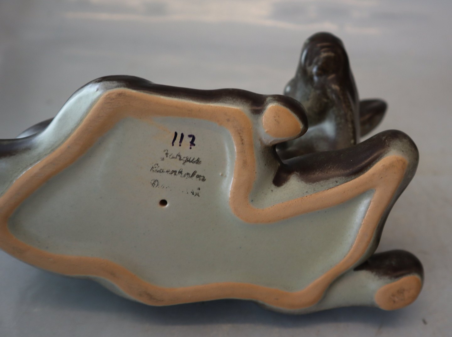 Beskrivelse: 117 Grøn glaseret klav 11.5 x 20 cm JohGus, Bornholmsk Keramik